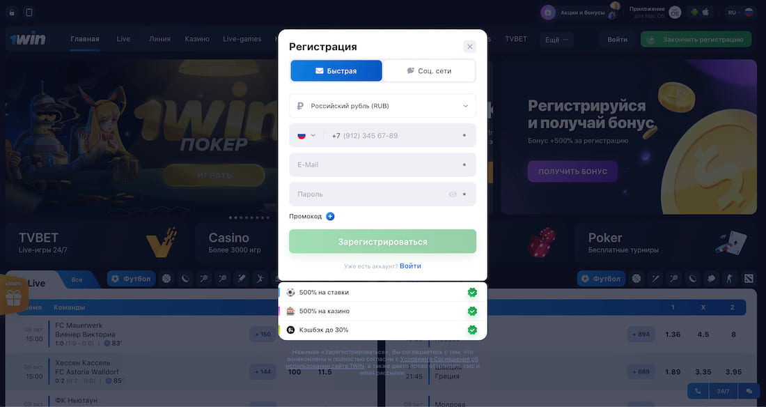 Создать аккаунт в 1 Вин – проще простого. Регистрация занимает всего пару минут, а после нее вы получите доступ ко всем возможностям платформы: ставкам на спорт, казино и бонусным программам.